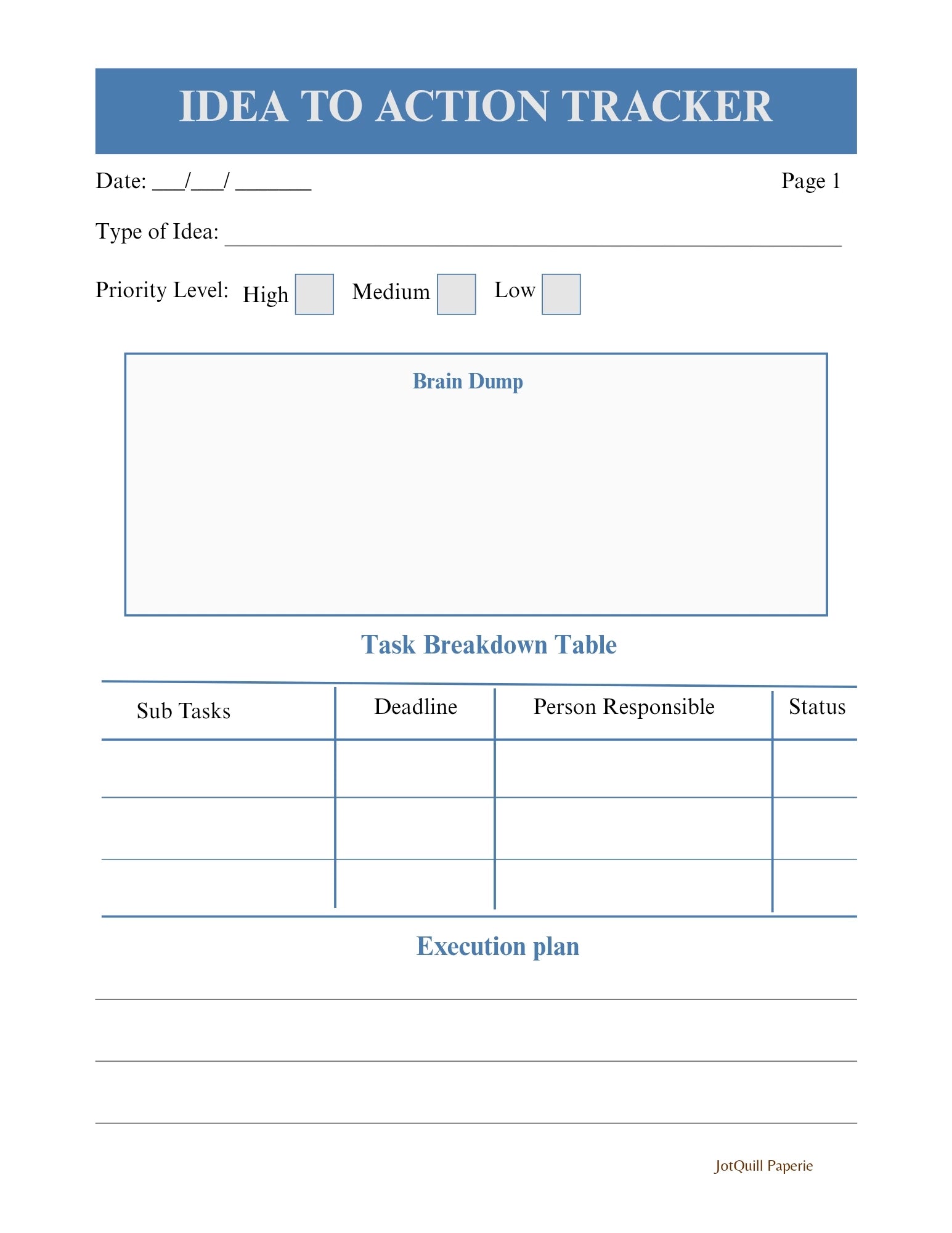 The Idea to Action Tracker turns mental clutter into clear steps so you can finally finish what you start.