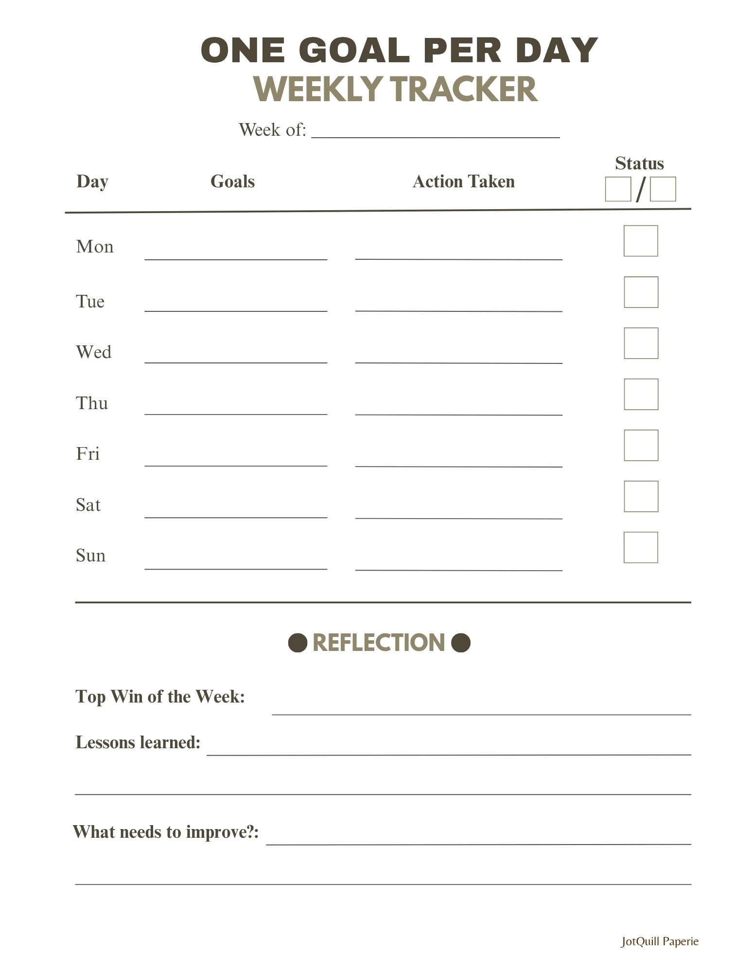 One Goal Per Day Weekly Tracker Printable | Daily Focus & Success Planner